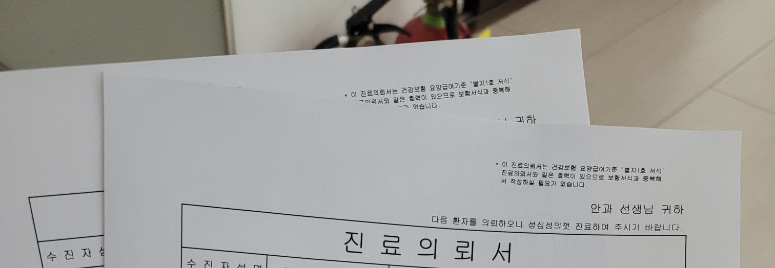 영등포 김안과 가서 진료의뢰서 떼달라고 했습니다.